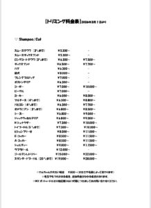 誠に勝手ながらトリミングの料金を改定させていただくことを、